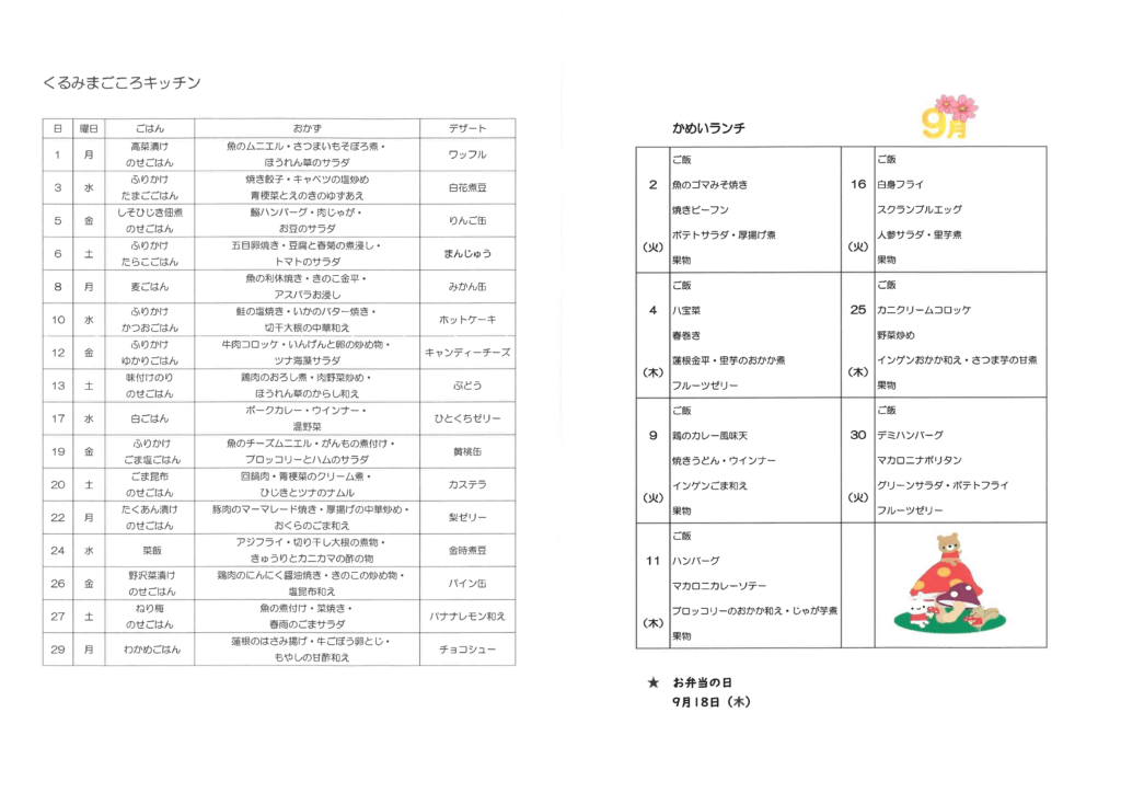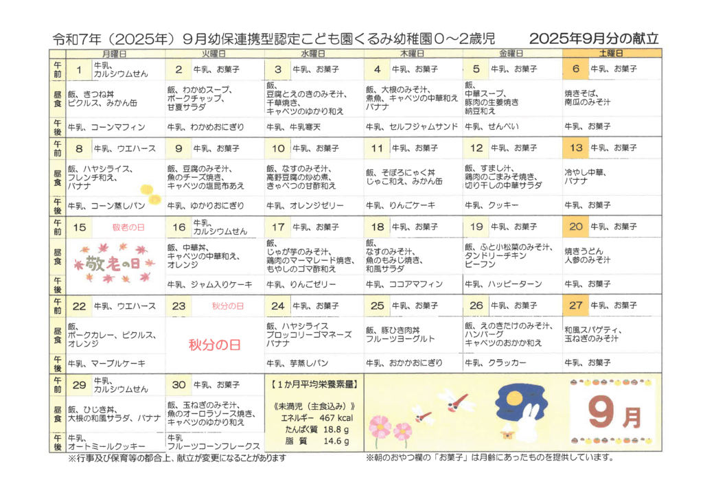 【R7】9月:1号認定&2号認定給食メニュー🍚
